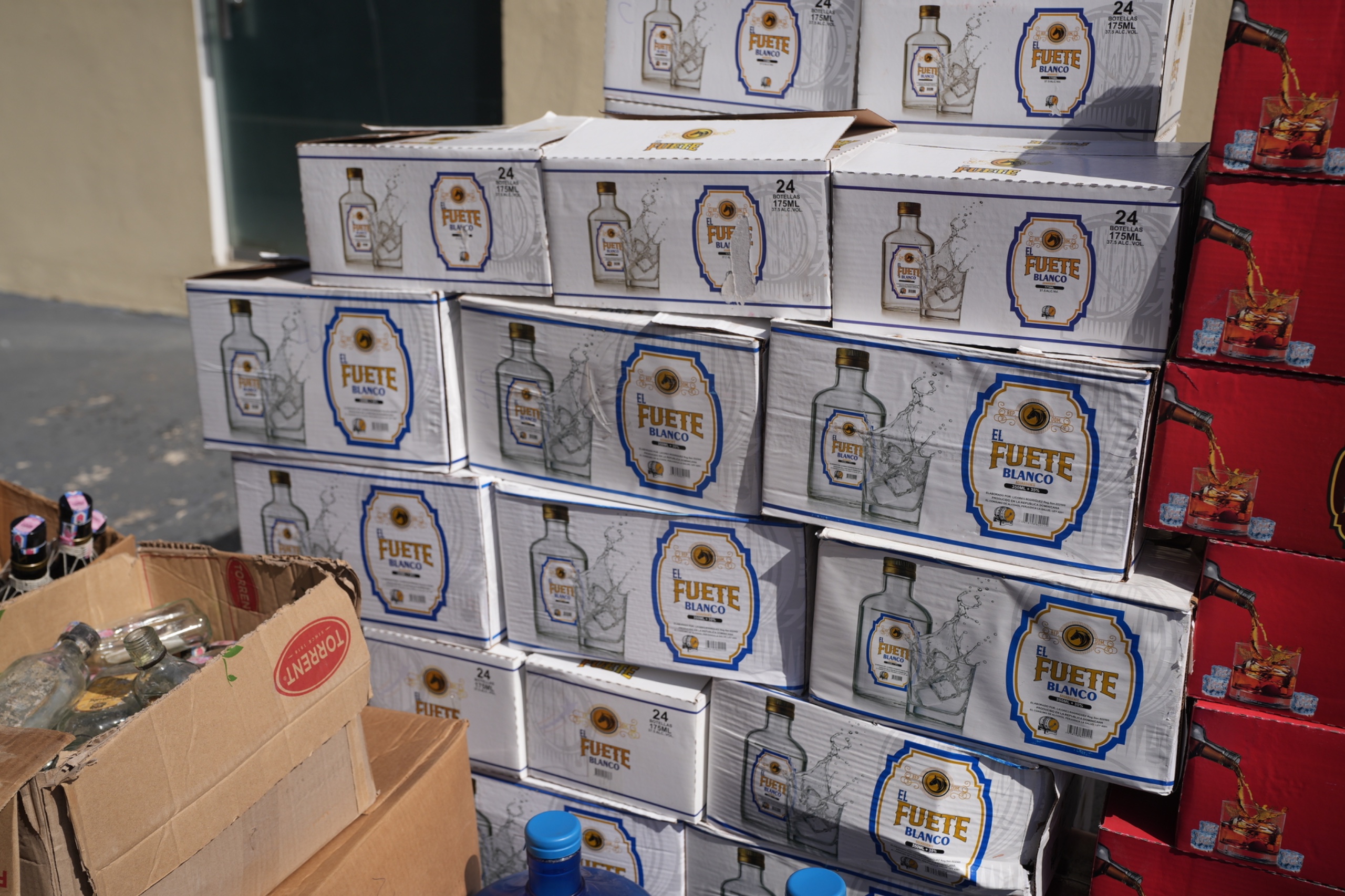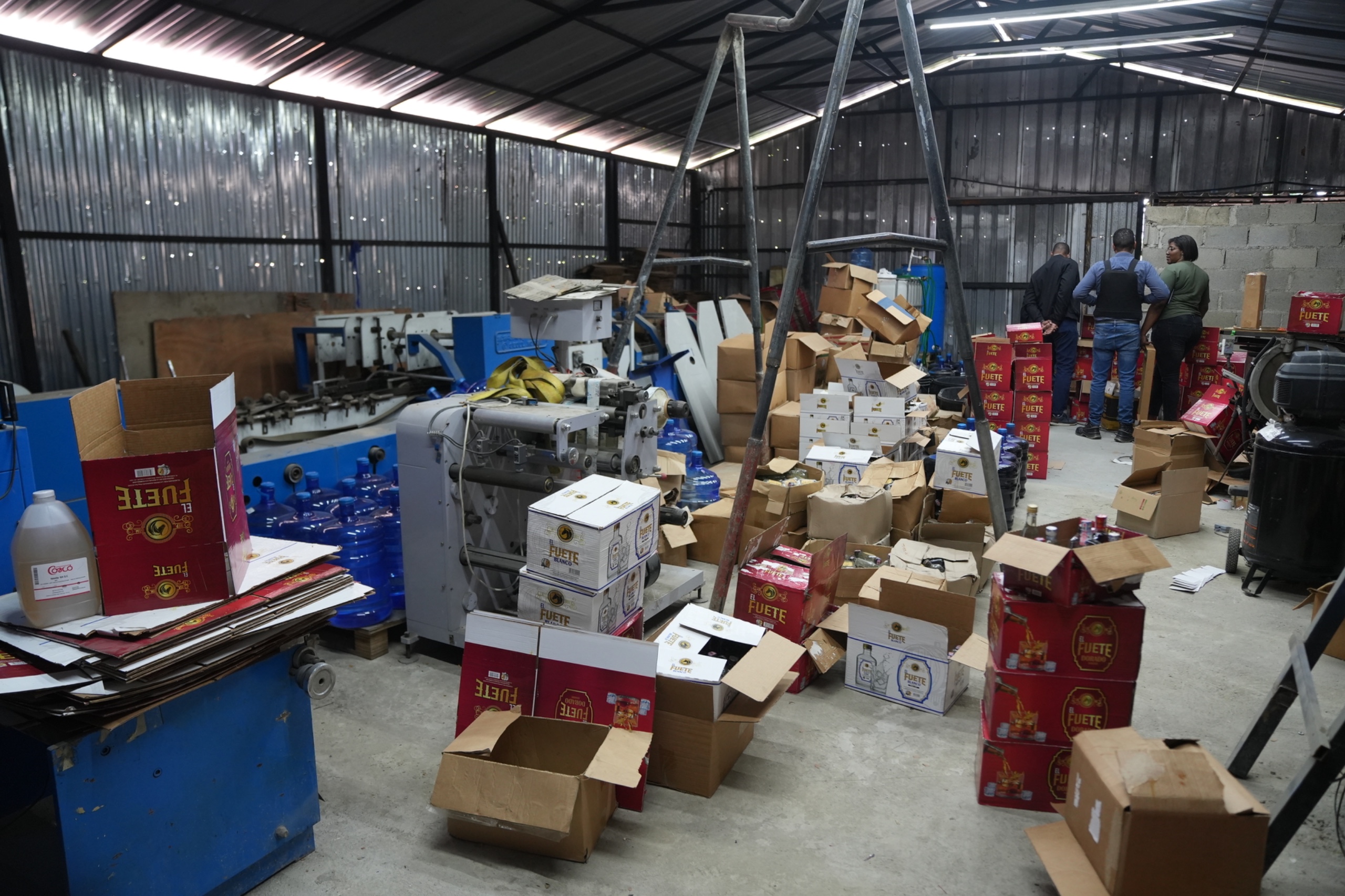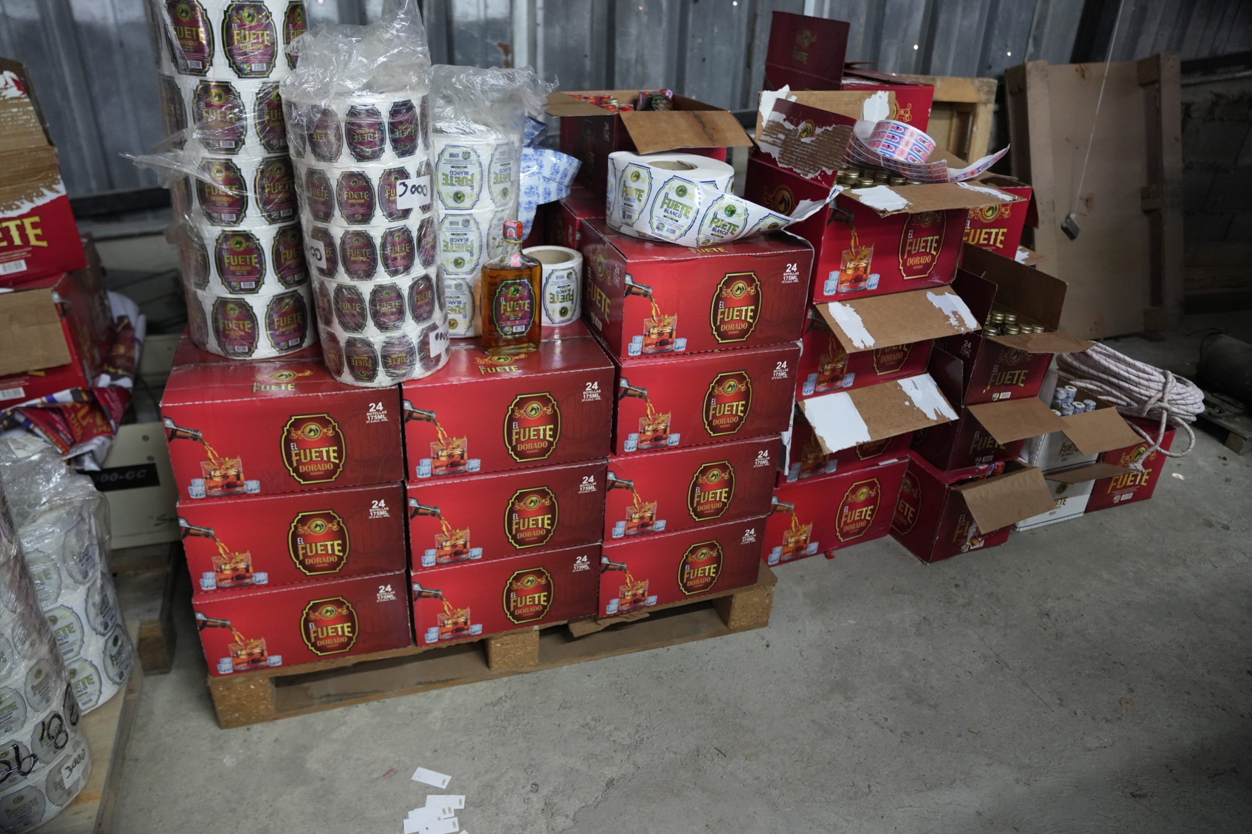 Durante el operativo se decomisaron 1,307 botellas de Ron El Fuerte etiquetadas y empacadas en cajas, junto a 77 garrafones de cinco galones de etanol, con capacidad para producir aproximadamente 4,163 botellas adicionales de 350 ml. El valor estimado en el mercado asciende a RD$1,094,000.00 solo en bebidas ilícitas. Asimismo, los sofisticados equipos de impresión y etiquetado incautados superan los RD$2,500,000.00, elevando el golpe económico total a más de RD$3,594,000.00, según la evaluación de los peritos del CECCOM.